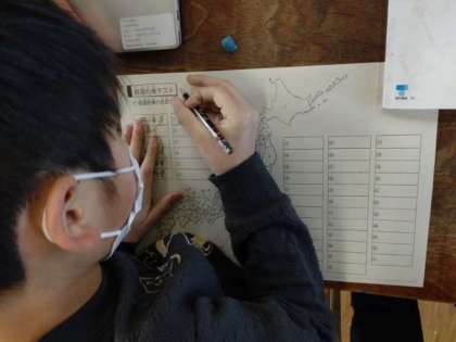 都道府県の漢字 公開日 2022/02/16 更新日 2022/02/16 お知らせ 4年生は国語科で「都道府県の漢字」について学習しています。1組では教科書の手本を見ながら、ワークシートに丁寧に漢字を書き込んでいました。「あっ、これもう習っている漢字だ。」という声も聞こえてきました。 これらの知識は、主に社会科で活用します。できるだけ漢字を使う習慣をつけていってほしいです。 いいね(0)