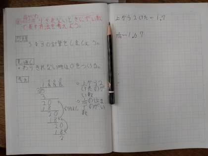 子どもたちは、工夫してノートに自分の考えをかき留めていました。