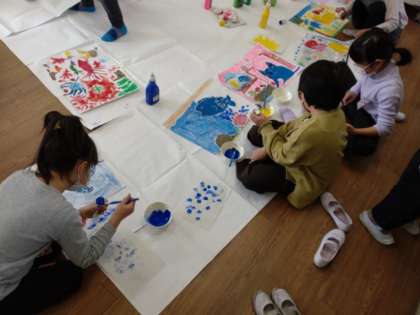 版の再利用 公開日 2022/02/25 更新日 2022/02/25 お知らせ 1年1組では、図画工作科「紙版画」で使用した後に残った版を再利用して、素敵な絵を作っていました。画用紙に紙版画で使った版を貼り、そのほかの部分に海の景色を描いていきます。パスで魚や海草などを描き、水彩絵の具をしみこませたティッシュペーパーで上から軽くたたいていくと……。水彩絵の具がパスをはじいて、幻想的な海の世界ができてきました。 いいね(0)
