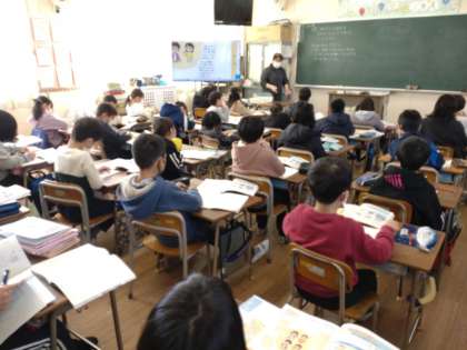 3年生は社会科で「大阪市のうつりかわり」について学習しています。これまで大阪市の歴史について学んできました。本時では、これからの大阪市のまちづくりについて考えていました。子どもたちはこれまでの課題を思い出して「ごみを出さない」「自然を大切にする」「子育てしやすい町」「安全・安心なまちづくり」など話し合っていました。