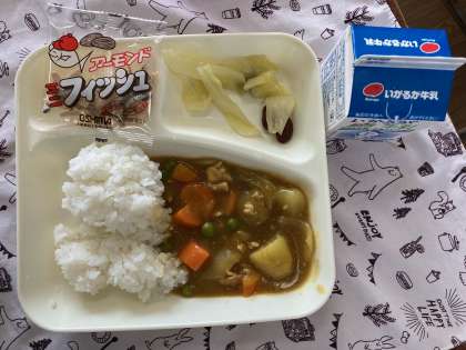 3月2日(水)の給食は、チキンカレーライス・牛乳・ビーンズサラダ・アーモンドフィッシュです。アーモンドフィッシュは、乾燥させたカタクチイワシとアーモンドを合わせた食品です。アーモンドは脂質を多く含むナッツの仲間です。カルシウムやビタミンEなども服慣れています。小さいカタクチイワシは、骨ごと食べることができるので、骨や歯を丈夫にするカルシウムをたくさんとることができます。噛み応えがあるので、しっかりとよく噛んで食べてほしいです。