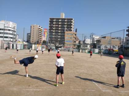 仕上げは、出野先生のノックのようです。ボールの落下地点まで動いて捕球できたでしょうか。