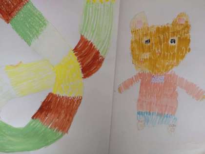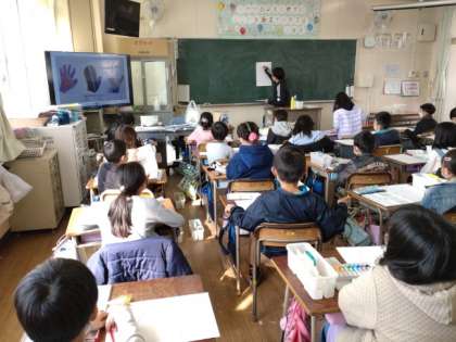 毛糸の着色 公開日 2022/03/09 更新日 2022/03/09 お知らせ 3年生は前時の図画工作科で、毛糸で作られた「手袋や帽子・ぬいぐるみ」を画用紙に下描きしていました。本時では、水彩絵の具を用意しているので、着色するようです。先生から毛糸らしく塗るには、「筆のタッチを細かくする」「濃淡・白・灰色の着色をくふうする」「水を少なめ、場合によってはほとんど混ぜなくてよい」など説明がありました。 児童は、最初恐る恐る着色していましたが、慣れてくると大胆に塗るようになってきました。 いいね(0)