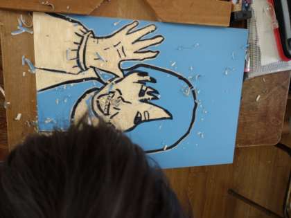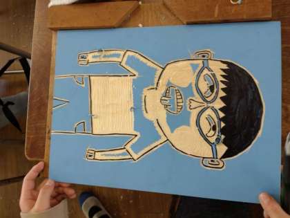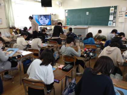 木版画 公開日 2022/03/09 更新日 2022/03/09 お知らせ 4年生は図画工作科で「木版画」に取り組んでいます。1組では、自分の顔や姿を彫り進んでいました。顔の部分が版画では白く表れるようにするので、かなりの面積を彫らなければいけません。しかも、焦って大事な線を削ってしまってはいけません。かなり彫り終わっている児童もいました。時間もかかったことと思われます。 ただ彫るだけでなく、顔が豊かな表情になっていて、下描きが崩れないようにも気を付けていました。 いいね(0)