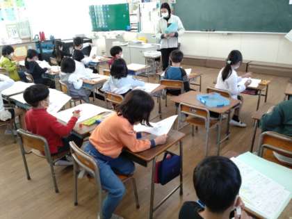 ししゃ 公開日 2022/03/14 更新日 2022/03/14 お知らせ 1年1組では書写の時間に「できるようになったよ」の視写をしていました。ひらがなを習って自分の名前をきれいに書けるようになった思いを書いた作文です。子どもたちも、そのころを思い出して、初心に戻って書き写していたでしょう。 2組では、視写のファイルを作って、1年間取り組んできた視写のプリントを綴じていました。結構な厚さになっていて、1年間のがんばりがファイルの厚みに表れていました。 いいね(0)