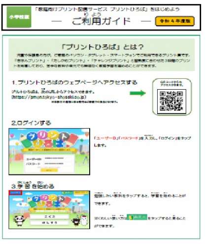 「プリントひろば」のはいしんさーびすについてお知らせします。ご家庭の学習にどうぞご活用ください。