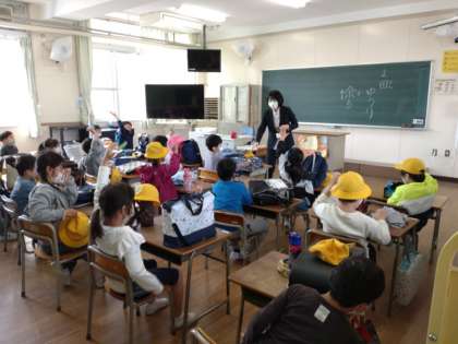 2年2組でも、担任の先生の自己紹介から始まりました。先生の名前にはまだ習っていない漢字が使われていますが、子どもたちにはぜひ知ってほしいので、漢字の読み方や意味を説明していました。先生の名前をもうしっかり覚えたでしょう。