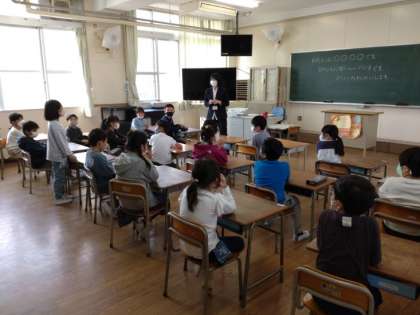 この後、子どもたちも一人ずつ自己紹介をしていきました。「わたしは〇〇です。」「すきなものは、(たべもの・どうぶつ)です。よろしくおねがいします。」さすが2年生、しっかり発表していました。