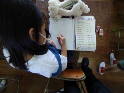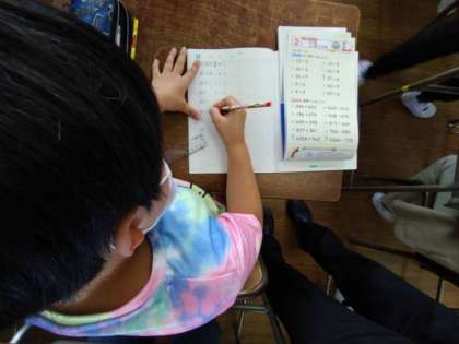 終わった児童から本日の宿題になっている計算ドリルをしてもいいようです。計算ドリルノートを使って、わり算や、3・4けたのたし算ひき算をがんばって解いていました。