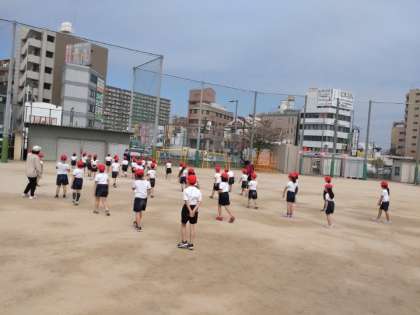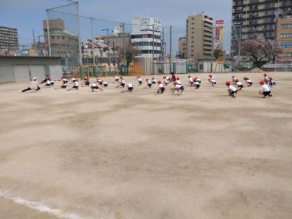 体操の隊形 公開日 2022/04/12 更新日 2022/04/12 お知らせ 2年生では1組と2組が一緒に体育をしていました。前半は、4列に整列してから、体操の隊形に広がる練習をしていました。最前列の4人が広がる場所を確認していました。そのあと、みんなが広がって自分の場所を確認します。大体の間隔がつかめたでしょうか。先生の合図でうまく広がることができました。2回目は時間もかからずに広がれました。 この後、体操や鬼ごっこをしていました。 いいね(0)