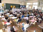 1年生が入学して1週間は、給食の用意を6年生が1年生の教室まで運んでくれています。運び終わった後、6年生が前に並び、1年生からお礼の言葉を伝えられています。「ありがとうございました。」