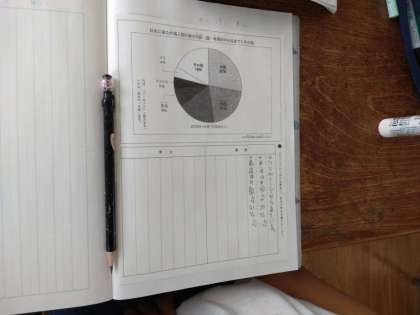 5年生は国語科で「事実と考えを区別しよう」を学習しています。1組では、「日本に来た外国人旅行者の内訳」の割合を表した円グラフから、分かった事実と、そこから考えたことをノートにまとめていました。