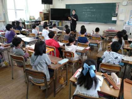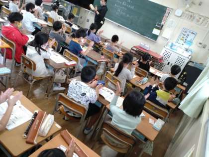 友だち 公開日 2022/04/21 更新日 2022/04/21 お知らせ 3年生は音楽科で「友だち」を学習していました。本時のテーマは「リズムでお友だちと仲よくなろう」のようです。「タン・タン・タン・(ウン)」「タ・タ・タ・タ・タン・(ウン)」「タン・タ・タ・タン・(ウン)」先生がタンバリンで、いろいろなリズムを打ちます。児童が同じリズムを手拍子で真似ます。「タン」と「タ・タ」の違いをはっきり表したり、「(ウン)」を待つことが難しがったようです。 いいね(0)