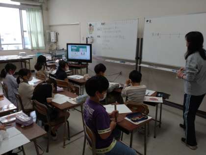 何十、何百のかけ算 公開日 2022/04/26 更新日 2022/04/26 お知らせ 3年生は算数科で「かけ算(1)」を学習しています。本時では、「(何十)×(一けた)」の計算の仕方について考えていました。次のような問題が配られ、式を立てました。 答えの見通しは「60円になりそうだ。」方法の見通しは「図をかいて考える。」「10のまとまりがいくつかで考える。」などが出てきた。活発な交流ができました。 いいね(0)