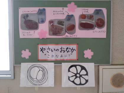 やさいのおなか これなあに? 公開日 2022/04/27 更新日 2022/04/27 お知らせ 給食掲示板に「やさいのおなか これなあに?」という題で、野菜の断面部分を見て野菜名を当てるクイズが出されていました。皆様は、これが何の野菜かわかるでしょうか? いいね(0)