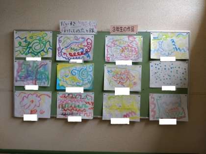だいすき わたしの点と線 公開日 2022/04/28 更新日 2022/04/28 お知らせ 3年生の掲示板に図画工作科で作った「だいすき わたしの点と線」の作品が貼られていました。画用紙いっぱいに点や線を描いています。使っている色も多彩で、とてもきれいな世界が広がっています。 いいね(0)
