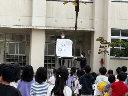 本校では、児童朝会で、教頭先生より1冊の絵本の紹介と話がありました。