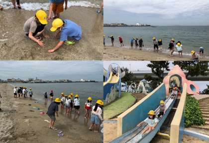 3年生・4年生はそれぞれ交代で、浜辺と遊具で遊びました。
