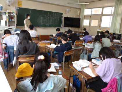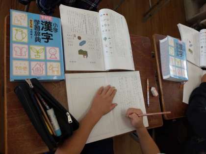 5年生は国語科で「漢字の成り立ち」について学習しています。2組では、三千年以上も前に中国で作られた漢字が、日本にも伝わり、日本語の文字として使われるようになったことを学びました。漢字の成り立ちには「象形文字」「指事文字」「会意文字」「形声文字」この4つがあるようです。机上に漢字辞典を置いて調べながら学習していました。