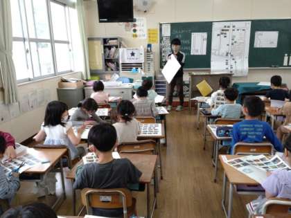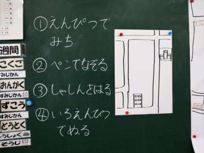 みんなで つうがくろを あるこう 公開日 2022/05/17 更新日 2022/05/17 お知らせ 1年生は生活科で「がっこう だいすき」の単元を学習しています。本時から自分の家から学校までの通学路を調べて、絵地図を作ります。「こはましょうてんがい」「こはまようちえん」「えきのかいだん」など、町にある施設や建物の写真が配られています。家から学校までの道を描いて、途中にある施設や建物を貼っていくようです。通学路をよく思い出して絵地図を完成してほしいと思います。 いいね(0)