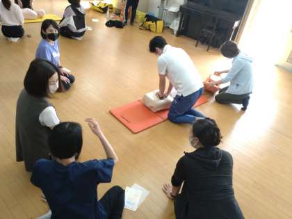 救命救急講習会 公開日 2022/05/18 更新日 2022/05/18 お知らせ 5月18日(水)住之江消防署の方々を講師にお迎えして、本校の教職員を対象にした救命救急講習会を実施しました。心肺蘇生法やAEDの使い方について講習を受けました。毎年水泳学習が始まる時期には必ず実施しています。もしもの事故は起こらないに越したことはありませんが、万が一の事態に備えて真剣に講習を受けました。 いいね(0)