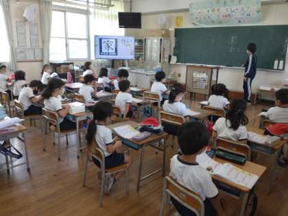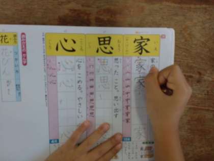 「家」 公開日 2022/05/18 更新日 2022/05/18 お知らせ 2年1組では国語科で新出漢字「家」について学んでいました。先生から、4・5・6画目の書き始めの位置のずれ具合に気をつけるように話がありました。5・7・8画目を等間隔にすることや5画目を微妙に曲げることも注意しなければならず、思うように書けていないようでした。漢字ノートも使って、がんばって練習してほしいと思います。 いいね(0)