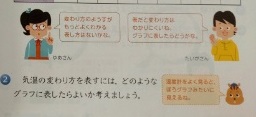 グラフや表に表そう 公開日 2022/05/18 更新日 2022/05/18 お知らせ 4年生は算数科で「グラフや表にあらわそう」の学習が始まりました。本時では、これまでに習ったぼうグラフについて復習していました。晴れの日と雨の日それぞれのの気温の変わり方を表したぼうグラフで気づいたことを出し合いました。 そして、1日の気温の変わり方のようすをさらに調べます。変わり方のようすがもっとよくわかる表し方はないでしょうか。 いいね(0)