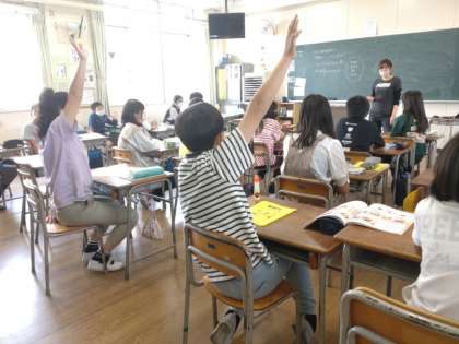 6年生は家庭科で「できることを増やしてクッキング」に取り組みます。まずは5年生で習った調理法の復習をしていました。ご飯やみそ汁づくり、そして、林間学習でカレーライスを作ったことも思い出し「たく」「煮る」「ゆでる」の調理法が出てきました。