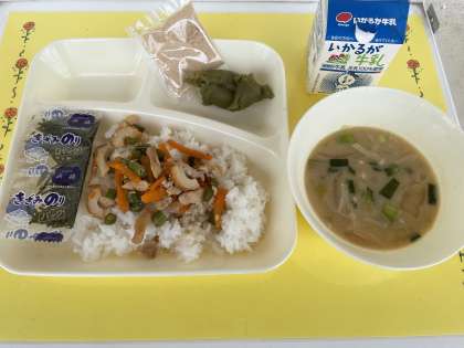 5月19日(木)の給食 公開日 2022/05/20 更新日 2022/05/20 お知らせ 5月19日(木)の給食は、かやくごはん・牛乳・じゃがいものみそ汁・抹茶ういろうです。お茶は、茶の木から葉を摘み取って蒸したものを乾燥させて作ります。これを粉にしたものが、抹茶です。「茶摘み」の歌にある「八十八夜」とは、立春(2月4日ごろ)から88日目のことです。このころに茶摘みが始まり、最初に収穫したものを新茶といいます2番目の写真は、ういろうをオーブンで蒸しあげているところです。 いいね(0)
