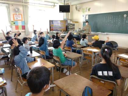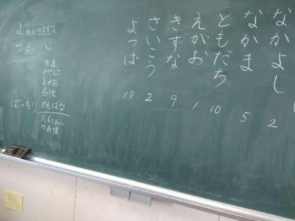 4年生は学級活動の時間に、学級のスローガンを話し合っていました。スローガンの頭文字をどの言葉からとりましょうか。「きょうりょく」「なかよし」「なかま」……など意見が出てきましたが「よつば」と決まりました。
