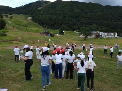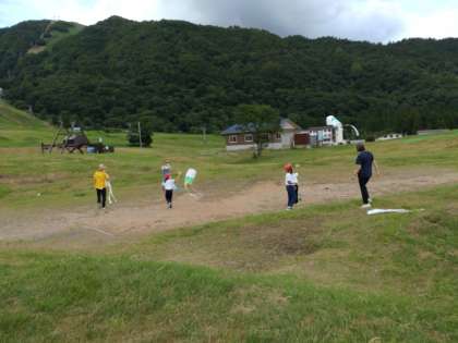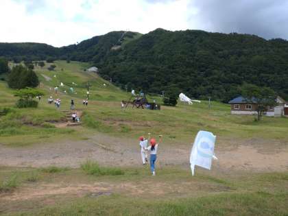 次は凧揚げです。高原の風に吹かれて高く揚がってほしいです。