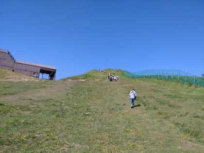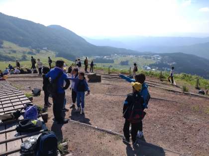 頂上に着きました。途中、しんどくて座り込んでしまう児童もいましたが、励まし合って登っていました。