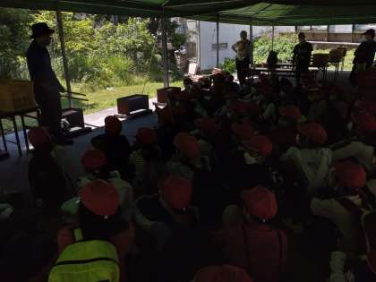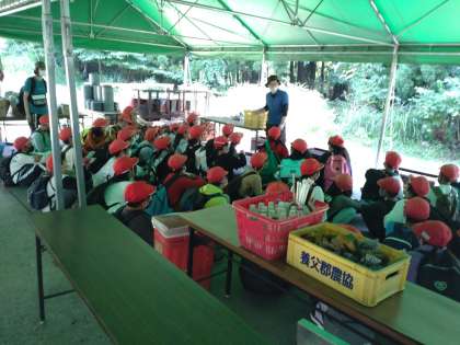 次は、飯盒炊さんです。活動班でカレーライスを作ります。