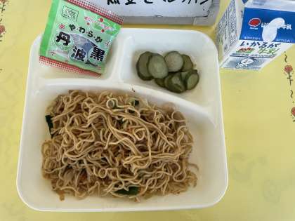 8月29日(月)の給食は、黒糖パン・牛乳・オイスターソース焼きそば・きゅうりのピリ辛あえ・ソフト黒豆です。オイスターソースは、中国料理の調味料です。貝のカキを塩漬けにし、発酵させて作ります。カキのほかに水あめやしょうゆ、砂糖などが使われています。黒みがかった茶色で、こってりとした旨味があります。また、カキから作られているので「カキ油」とも言います。カキのうまみをいっぱい含んだ焼きそば、大人気でおかわりの希望者が続出でした。