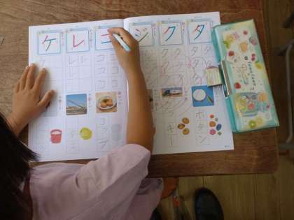 カタカナ 公開日 2022/08/31 更新日 2022/08/31 お知らせ 1年生が国語科の時間に、カタカナの練習をしていました。「コ」「レ」「ケ」比較的画数が少ない文字ですが、はらい・とめ・おれなどに気をつけながら丁寧に練習していました。カタカナを身につけて、作文などでも活かせるようにがんばってほしいです。 教室の後ろには、夏休みに作った自由工作がたくさん飾られていました。力作がそろっていました。 いいね(0)