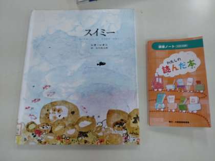 読んだ本は、読書ノートに記録していきます。国語科で習う「スイミー」の本を選んでいる児童もいました。