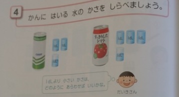 「『デシリットル』より小さい『ミリリットル』を聞いたことがある。」「1dlは、100ml」など子どもたちは知っている知識を出し合っていました。話し合った内容は、先生が黒板でまとめていきました。「1リットルは、何ミリリットルになるでしょう?」の問いに、「1dlは、100mlだから・・・。」