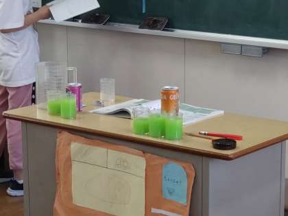ミリリットル(1) 公開日 2022/09/05 更新日 2022/09/05 お知らせ 2年生は算数科で「水のかさ」について学習しています。2種類の缶があります。それぞれの缶に入る水のかさを調べます。今までに習った「デシリットルます」で量ると「2杯と半分」「3杯と半分」になります。この半分を表すためには「デシリットル」より小さい単位が必要なようです。 ところで、ジュースの缶から緑色の液体が出たときに、子どもたちからがっかりした声が聞こえました。ジュースが飲めると期待したのでしょうか? いいね(0)
