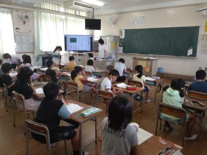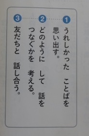 2年生は国語科では、「うれしく なる ことばを あつめよう」に取り組んでいます。前時にどんなことを言われたらうれしくなるのか考えました。カードの表に「うれしかった言葉」、裏に「どんな時に言われたのか」書き込んでいました。2組では、相手をうれしい気持ちにさせるために、さらにどんなことに気をつけて話していけばいいのか考えます。話がつながるように「質問する」「似ていることや同じことを伝える」と良いようですがうまくできるでしょうか?