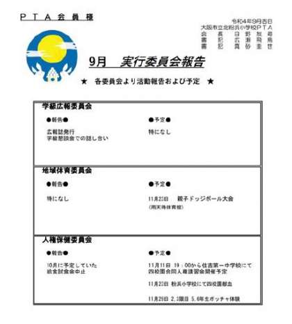 9月PTA実行委員会がありました。