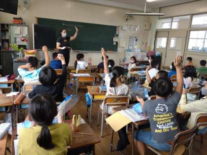 3年生の教室から「うさぎ うさぎ なにみて はねる・・・」素敵な歌声が聞こえてきました。併せて、先生から十五夜のお話がありました。児童は、美しい月夜の景色を思い浮かべて聞いているようでした。