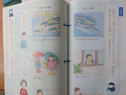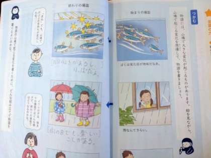 山場のある物語を書こう 公開日 2022/09/26 更新日 2022/09/26 お知らせ 4年生では国語科で「山場のある物語を書こう」を学習しています。教科書には始まりの場面と終わりの場面の絵が載せられています。山場とは、登場人物に大きな変化が起こる場面のことをいいます。山場で何があったのかを、絵を観ながら想像します。いろいろな意見がありましたが、登場人物が前向きな気持ちになれる展開がよいようです。自分なりのストーリーを立てて、山場に起こったことを書きこんでいました。 いいね(0)