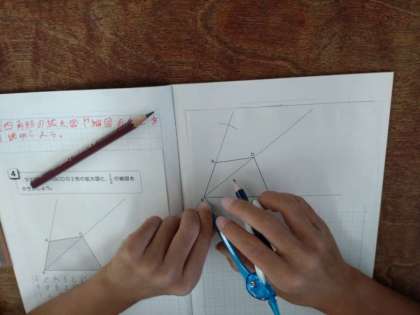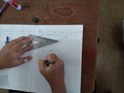 拡大図と縮図 公開日 2022/09/29 更新日 2022/09/29 お知らせ 6年生は算数科で「拡大図と縮図」について学習しています。本時では、四角形の「2倍の拡大図」や「1/2の縮図」のかき方について考えていました。見通しでは、角を挟む2本の辺、そして、その間の対角線に着目していました。ある児童はさしを、また、ある児童はコンパスを使って、2倍の拡大図をかく方法に取り組んでいました。 いいね(0)