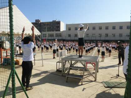 運動会2 公開日 2022/10/02 更新日 2022/10/02 お知らせ プログラム1番「ラジオ体操」です。体操係が前に立って正しく見本を見せてくれたので、低学年もしっかり体操できました。 プログラム2番「声を出して 全力応援団」です。3年ぶりの応援団、団長も旗手も太鼓係も、そして団員全員力が入る応援でした。児童や保護者の方からも大きな拍手をいただきました。 いいね(0)