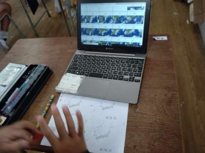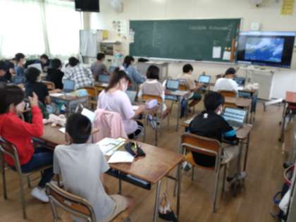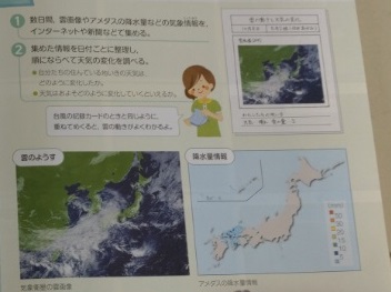 雲の動きと天気の変化 公開日 2022/10/05 更新日 2022/10/05 お知らせ 5年生は理科で「雲と天気の変化」について学習しています。1組では、雲の動きによって、天気がどのように変化するのかを調べて、そこにきまりがないかを確かめていました。タブレットを使って、時系列で雲の動きと天気の変化について調べ、白地図にかき込んでいました。結果をもとに、日本付近では雲はどの方角からどの方角へ動くのか、天気は主にどの方角からどの方角へ変化していくのかを考えていました。 いいね(0)