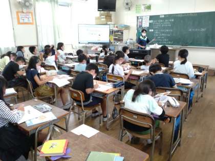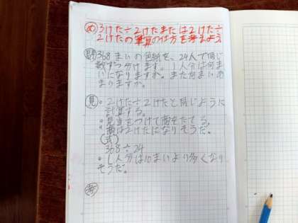 4年生は算数科で「わり算」について学習しています。前時までに「(2けた)÷(2けた)」の筆算の仕方について学んでいました。本時では、「(3けた)÷(2けた)」の筆算の仕方について考えていました。答えの見通し、方法の見通しを立ててから、実際に計算してみました。商は、「どの位に立てるか?」「数字は?」基本的には「(2けた)÷(2けた)」の筆算の仕方と変わらないようです。慎重に計算の仕方を確認していました。