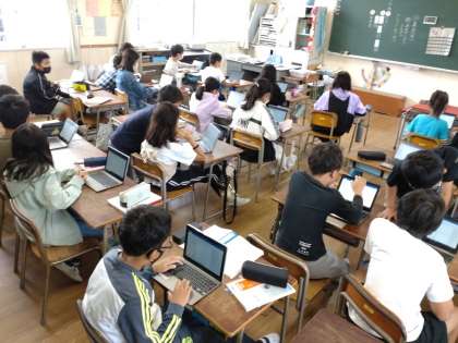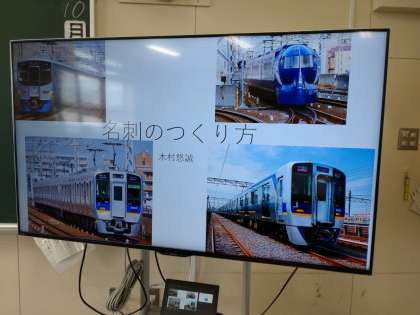 名刺作り 公開日 2022/10/06 更新日 2022/10/06 お知らせ 5年2組では学級活動の時間に「名刺作り」に取り組んでいました。名刺作りについて調べてきた児童が大型黒板で作り方を紹介します。タブレットを使って作っていきます。作り方自体はあまり難しくないようですが、限られた小さなスペースである名刺の上に、自分の情報を取捨選択して印象に残るようにレイアウトするのは簡単ではないようです。素敵な名刺はできたでしょうか。 いいね(0)
