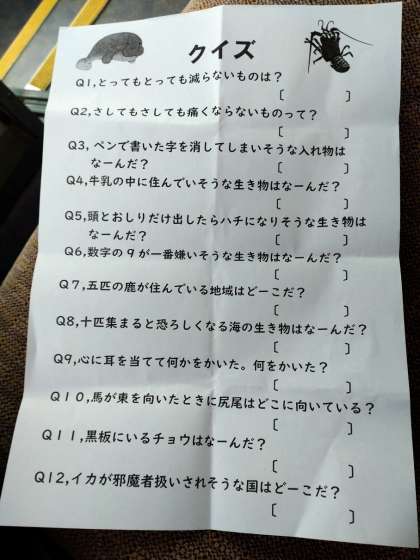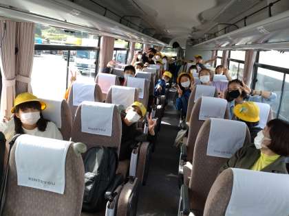 ?バスでは、クイズやビンゴなどリクリエーションをして、楽しく過ごしています。