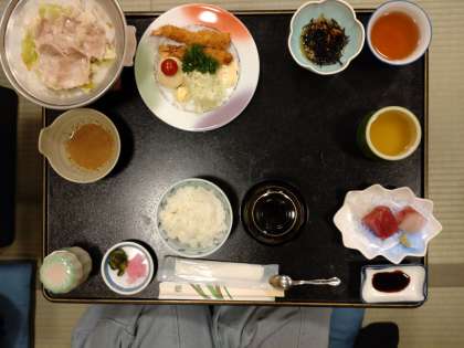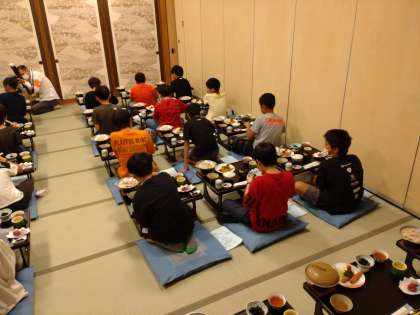 夕食です。昼間しっかり活動したので、みんなお腹がすいているようです。