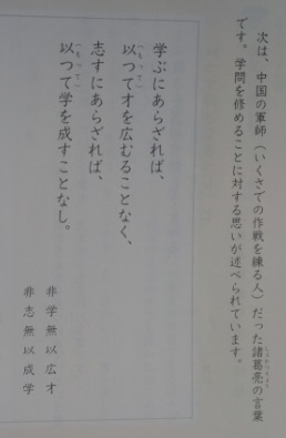 漢文に親しむ 公開日 2022/10/19 更新日 2022/10/19 お知らせ 6年生は国語科で「漢文に親しむ」を学習しています。「百聞不如一見」「聞一以知十」「温故知新」教科書には有名な漢文が次々に並んでいます。6年生にしても、漢文として読むのは初めてでも、聞いたことはあるのではないでしょうか。レ点などがなく、現代文と比べると字の順番が違うので戸惑うかもしれませんが、慣れるという意味では、漢文の面白さに浸れたでしょうか。 いいね(0)